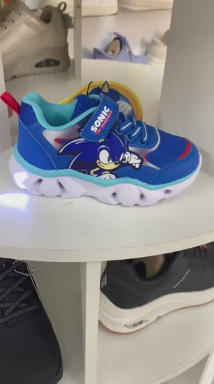Dal design a taglio basso, sono caratterizzate da una tomaia in tessuto con inserti in similpelle e dettagli colorati che richiamano il mondo del velocissimo Sonic. Dotate di una comoda e pratica chiusura a strappo con lacci elastici, che assicura una calzata facilitata permettendo di infilare e sfilare la scarpa liberamente mantenendo ben saldo il piede, presentano infine una suola con luci integrate che illumina ogni piccolo passo.